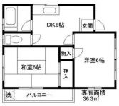 1980September 49,000 yen, 2DK, 5th floor / 6-story, 36.3 sq m | |