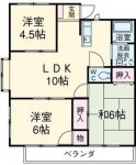 1991March 90,000 yen, 3DK, Second floor / 4-story, 64.35 sq m | |