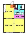 1988February 40,000 yen, 2DK, Second floor / 2-story, 43.88 sq m | ||