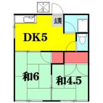 45,000 yen, 2DK, Second floor / 2-story, 39.6 sq m