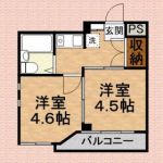 70,000 yen, 2DK, 1st floor / 2-story, 46.06 sq m |