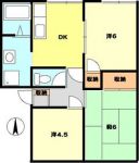 68,000 yen, 2DK, 1st floor / Three-story, 45.6 sq m |