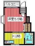 58,000 yen, 2DK, Second floor / 5-story, 45 sq m |
