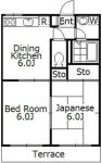 74,000 yen, 2DK, 1st floor / 2-story, 44.09 sq m |