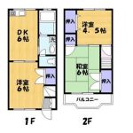 76,000 yen, 2LDK, 1st floor / 2-story, 54.3 sq m | | Soka, Saitama Hachiman-cho