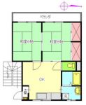 53,000 yen, 2DK, 3rd floor / Three-story, 43.06 sq m |