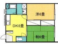1990March 55,000 yen, 2DK, Second floor / 2-story, 39.75 sq m | ||