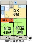 1991April 54,000 yen, 2DK, Second floor / 2-story, 35.3 sq m | ||