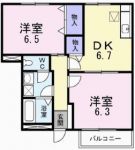 2005September 58,000 yen, 2LDK, Second floor / 2-story, 49.85 sq m | ||