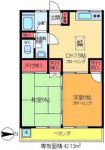 68,000 yen, 2DK, Second floor / 2-story, 42.13 sq m |
