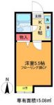 38,000 yen, 1K, 1st floor / 2-story, 15.08 sq m |
