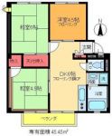 92,000 yen, 3DK, 3rd floor / Three-story, 45.45 sq m |