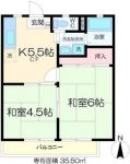 58,000 yen, 2DK, Second floor / 2-story, 35 sq m |