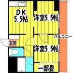 65,000 yen, 2DK, 3rd floor / 5-story, 40.7 sq m |