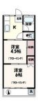 95,000 yen, 2DK, 4th floor / Underground 1 ground 6-story, 43.2 sq m | | Chofu, Tokyo Kikunodai 1