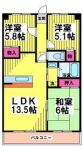 99,000 yen, 2LDK, Second floor / 4-story, 53.26 sq m |
