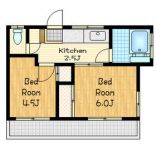 60,000 yen, 2K, Second floor / 2-story, 31.58 sq m |