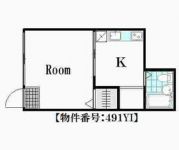 60,000 yen, 1K, Second floor / 2-story, 21 sq m |