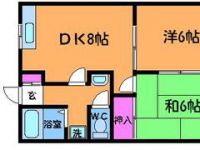 90,000 yen, 2DK, Second floor / 2-story, 44 sq m |