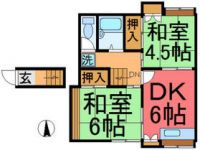 73,000 yen, 2DK, Second floor / 2-story, 38 sq m |