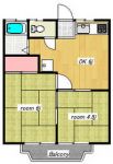 75,000 yen, 2DK, Second floor / 2-story, 38 sq m |
