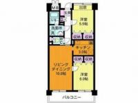 88,000 yen, 2DK, 9 floor / 10-storey, 42.98 sq m |