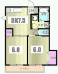 75,000 yen, 2DK, 1st floor / 2-story, 42.9 sq m |