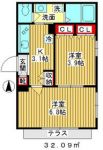 84,000 yen, 2K, 1st floor / Three-story, 32.09 sq m |