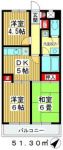 89,000 yen, 3DK, Second floor / 6-story, 51.3 sq m |