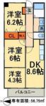83,000 yen, 3DK, 4th floor / 4-story, 56.79 sq m |