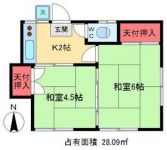 42,000 yen, 2K, Second floor / 2-story, 28.09 sq m |