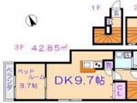 82,000 yen, 1DK, 3rd floor / Three-story, 42.85 sq m |