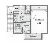 45,000 yen, 1DK, Second floor / 4-story, 22.85 sq m |