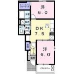 75,000 yen, 2DK, Second floor / 2-story, 39.2 sq m |