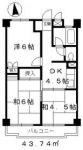 68,000 yen, 3DK, 3rd floor / Three-story, 43.74 sq m |
