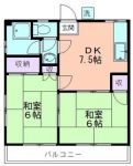 75,000 yen, 2DK, Second floor / 2-story, 38.46 sq m |