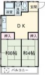 92,000 yen, 2LDK, 3rd floor / 4-story, 44.25 sq m |