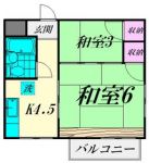75,000 yen, 2K, Second floor / 2-story, 34.71 sq m | | Ota-ku, Tokyo Nakarokugo 1