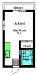 66,000 yen, One-room, 5th floor / 10-storey, 16.5 sq m |