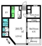 65,000 yen, 1DK, Second floor / Three-story, 27.93 sq m |