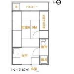 49,000 yen, 1K, Second floor / 2-story, 19.87 sq m | | Setagaya-ku, Tokyo Hachimanyama 2