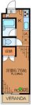 75,000 yen, 1K, Second floor / 2-story, 20.26 sq m |