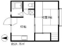 60,000 yen, 1K, 1st floor / 2-story, 24.75 sq m |