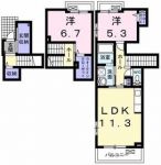 91,000 yen, 2LDK, Second floor / 2-story, 56.47 sq m |