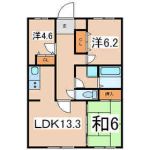Floor plan details 間取り詳細 | | Sum 6 Hiroshi 6.2 Hiroshi 4.6 LDK13.3 和6 洋6.2 洋4.6 LDK13.3 |