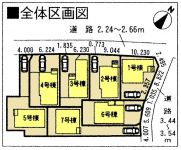 Features pickup 特徴ピックアップ | | Pre-ground survey / Parking two Allowed / Energy-saving water heaters / System kitchen / Bathroom Dryer / All room storage / LDK15 tatami mats or more / Japanese-style room / Washbasin with shower / Face-to-face kitchen / Toilet 2 places / Bathroom 1 tsubo or more / 2-story / Southeast direction / South balcony / Double-glazing / Warm water washing toilet seat / Underfloor Storage / The window in the bathroom / TV monitor interphone / Water filter / City gas / Storeroom 地盤調査済 /駐車2台可 /省エネ給湯器 /システムキッチン /浴室乾燥機 /全居室収納 /LDK15畳以上 /和室 /シャワー付洗面台 /対面式キッチン /トイレ2ヶ所 /浴室1坪以上 /2階建 /東南向き /南面バルコニー /複層ガラス /温水洗浄便座 /床下収納 /浴室に窓 /TVモニタ付インターホン /浄水器 /都市ガス /納戸 | Price 価格 | | 26,900,000 yen ~ 30,900,000 yen 2690万円 ~ 3090万円 | Floor plan 間取り | | 2LDK + 2S (storeroom) ~ 4LDK + S (storeroom) 2LDK+2S(納戸) ~ 4LDK+S(納戸) | Units sold 販売戸数 | | 7 units 7戸 | Total units 総戸数 | | 7 units 7戸 | Land area 土地面積 | | 120.02 sq m ~ 150.12 sq m (36.30 tsubo ~ 45.41 tsubo) (Registration) 120.02m2 ~ 150.12m2(36.30坪 ~ 45.41坪)(登記) | Building area 建物面積 | | 94.77 sq m ~ 98.81 sq m (28.66 tsubo ~ 29.88 tsubo) (Registration) 94.77m2 ~ 98.81m2(28.66坪 ~ 29.88坪)(登記) | Driveway burden-road 私道負担・道路 | | Road width: 2.24m ・ 3.54m, Asphaltic pavement 道路幅:2.24m・3.54m、アスファルト舗装 | Completion date 完成時期(築年月) | | December 2013 schedule 2013年12月予定 | Address 住所 | | Each part of the Aichi Prefecture, Miyoshi City, Miyoshi Xinwu 63.64.65, And 59-2 愛知県みよし市三好町新屋63.64.65の各一部、および59-2 | Traffic 交通 | | Toyodasen Meitetsu "Akaike" bus 23 minutes Ayumi Xinwu 2 minutes Toyodasen Meitetsu "Kurozasa" walk 57 minutes Toyodasen Meitetsu "Nisshin" walk 63 minutes 名鉄豊田線「赤池」バス23分新屋歩2分 名鉄豊田線「黒笹」歩57分 名鉄豊田線「日進」歩63分