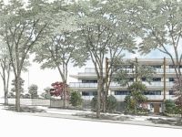 けやき並木越しに見える外観完成予想イラスト(※1)